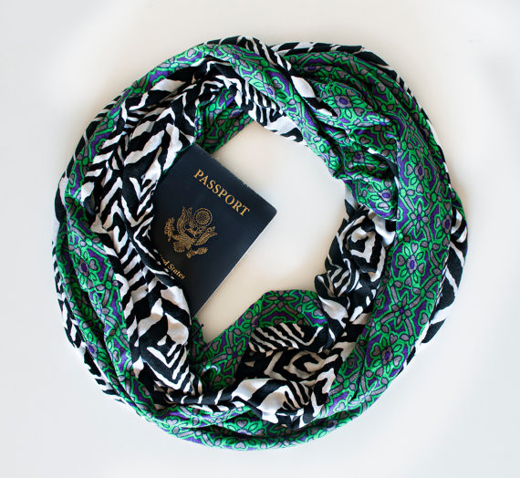 I’m one of those people in line at the airport who has to dig through her entire carry-on–only to realize my passport is in my back pocket. When I came across this ingenious scarf, I just knew I had to share it with my friends.