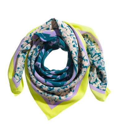 Simply fold the scarf in half to make a triangle. Put the scarf around your neck with the triangle pointed down your back and make a double knot with the two points in the middle of your neck. Leave the scarf a little loose, so it is not uncomfortable. Flip the scarf around so the knot is under your hair and voila.