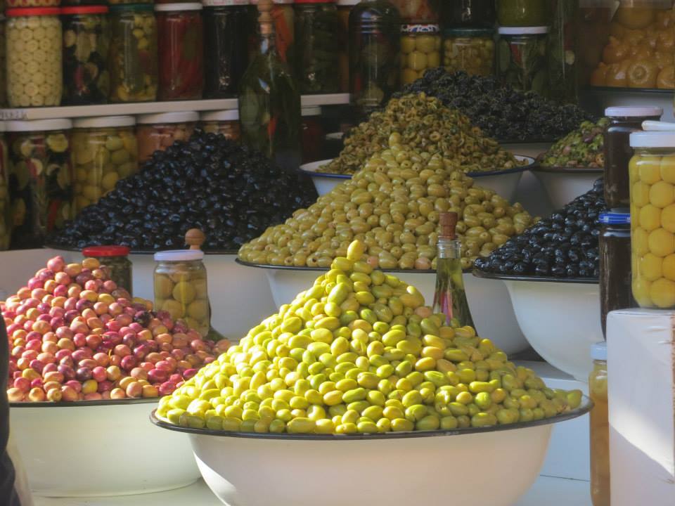 Glistening olives and technicolor spices mingle with sequined baskets and snake charmers. The charred smell of goat being barbecued wafts in between glasses of fragrant mint tea. Shop owners and shoppers bark at each other in Arabic, bargaining over the best price for a pound of snails.