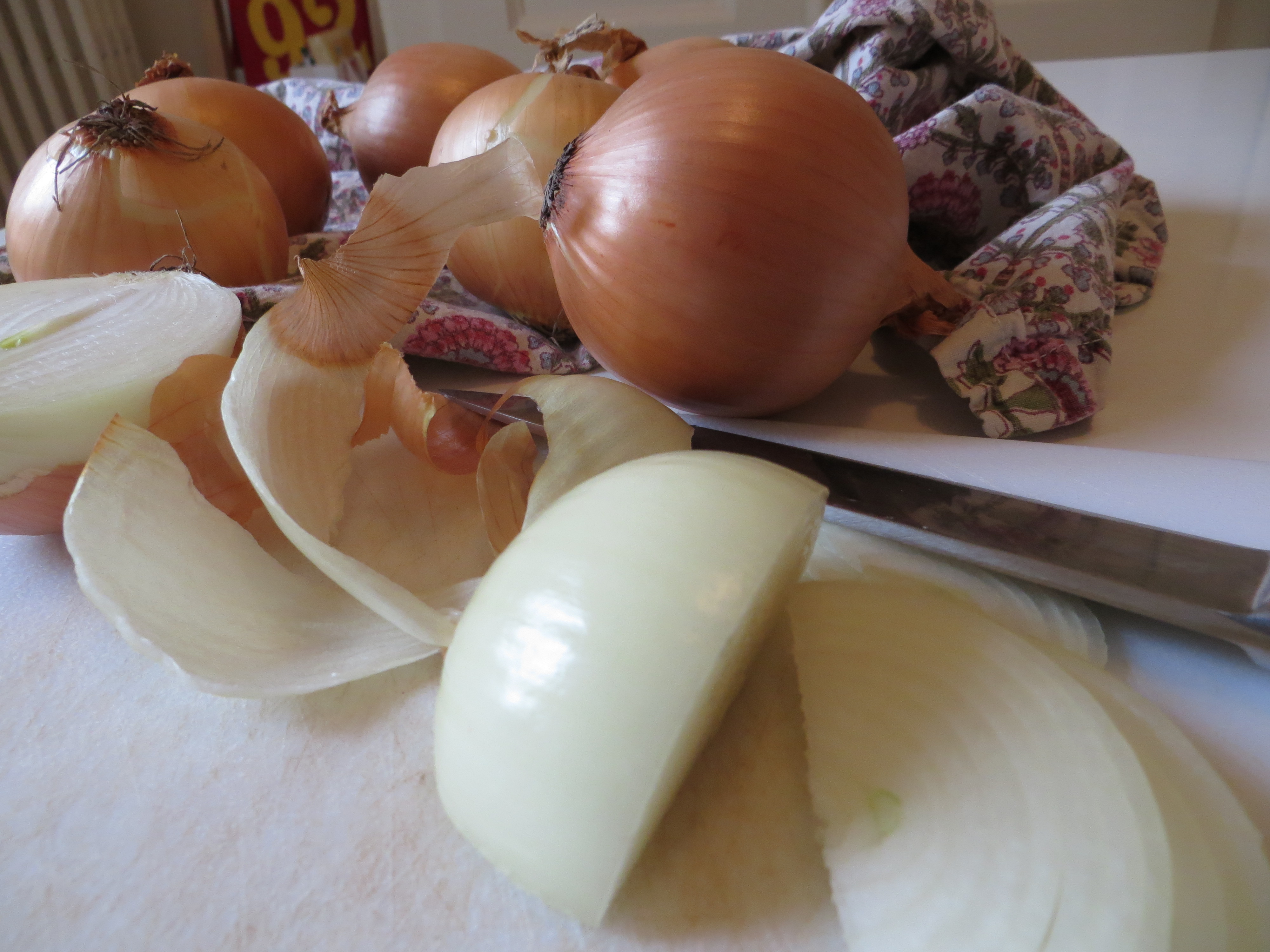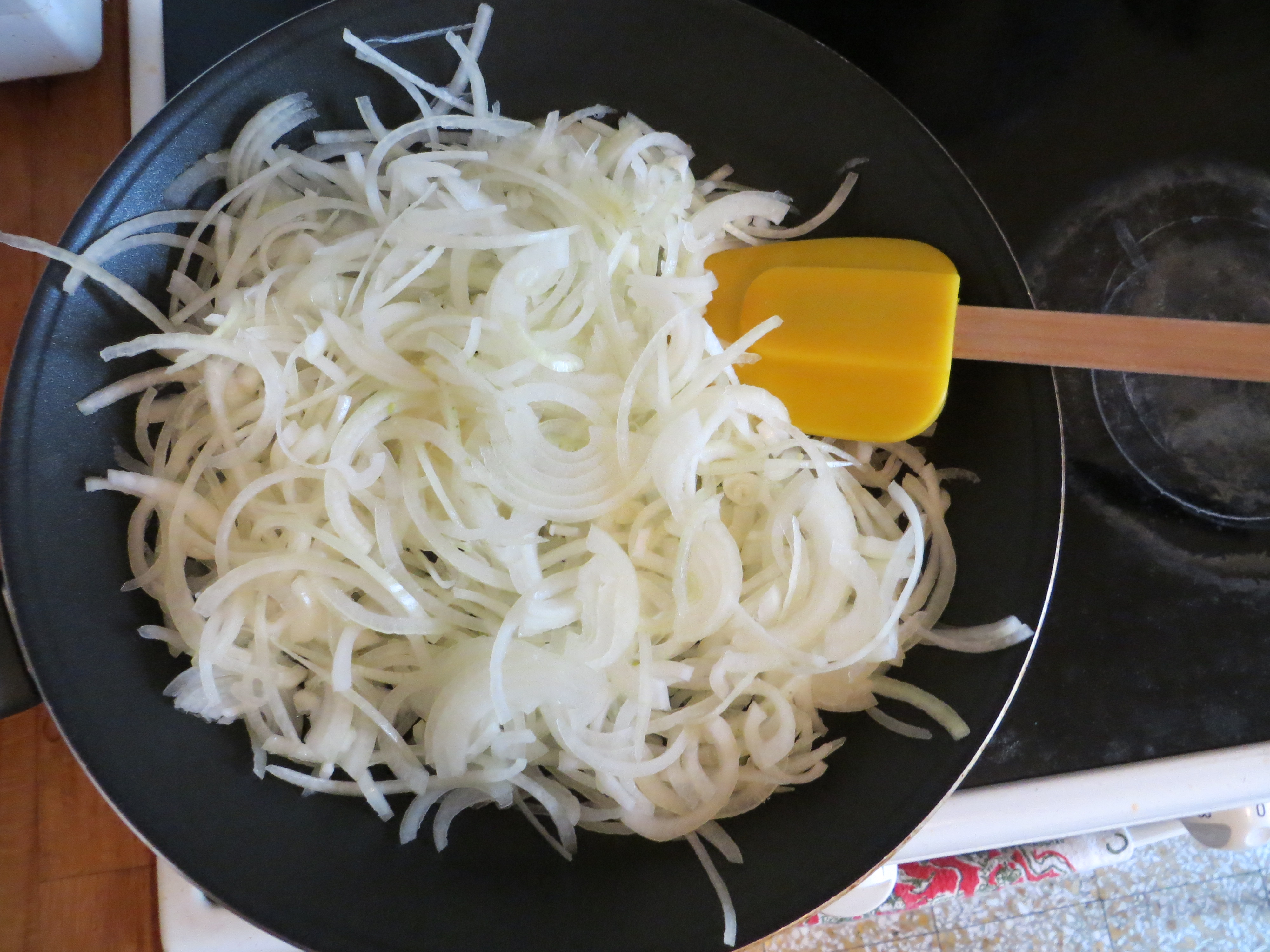 - 5 cups yellow onions, sliced thinly