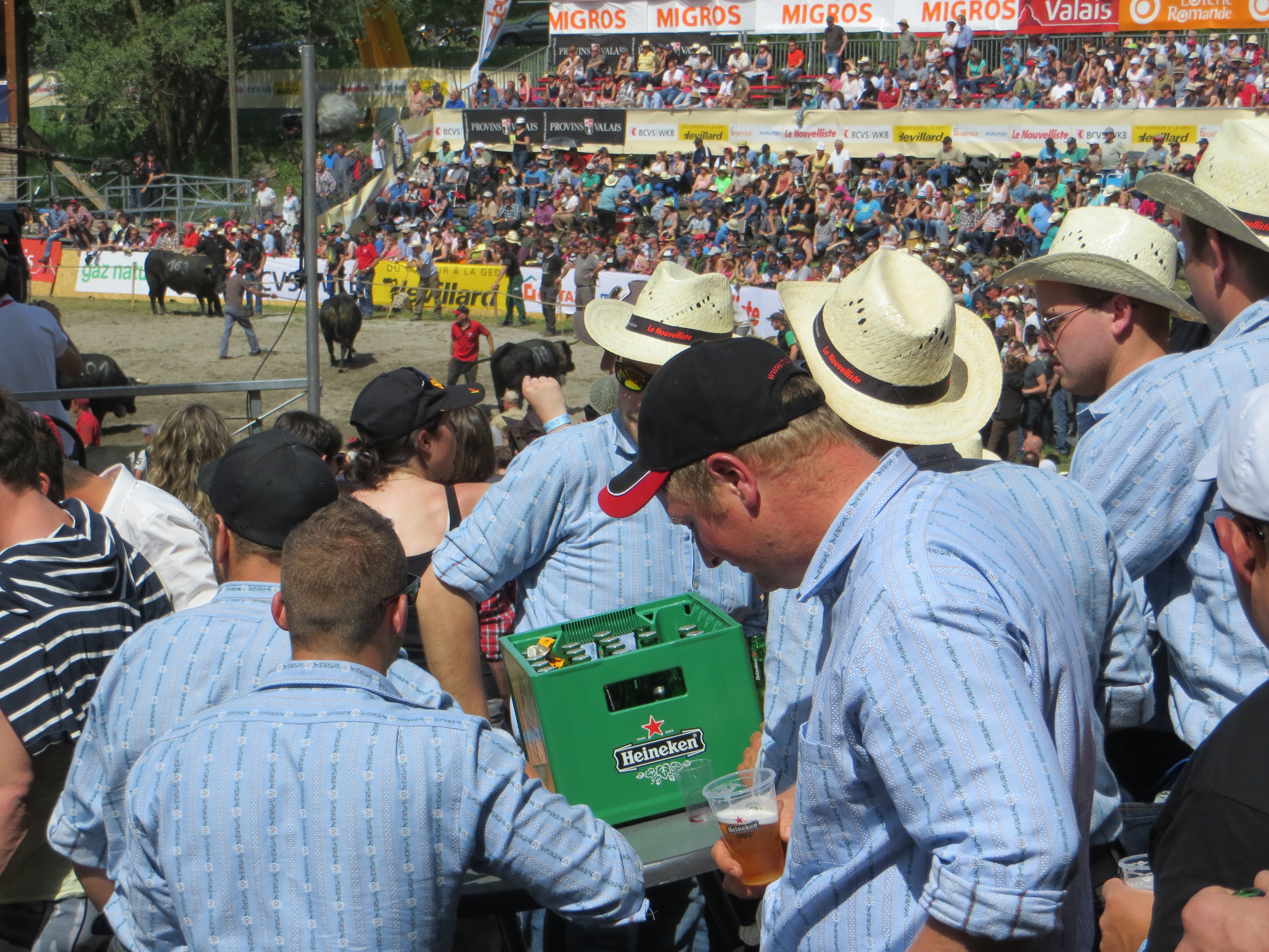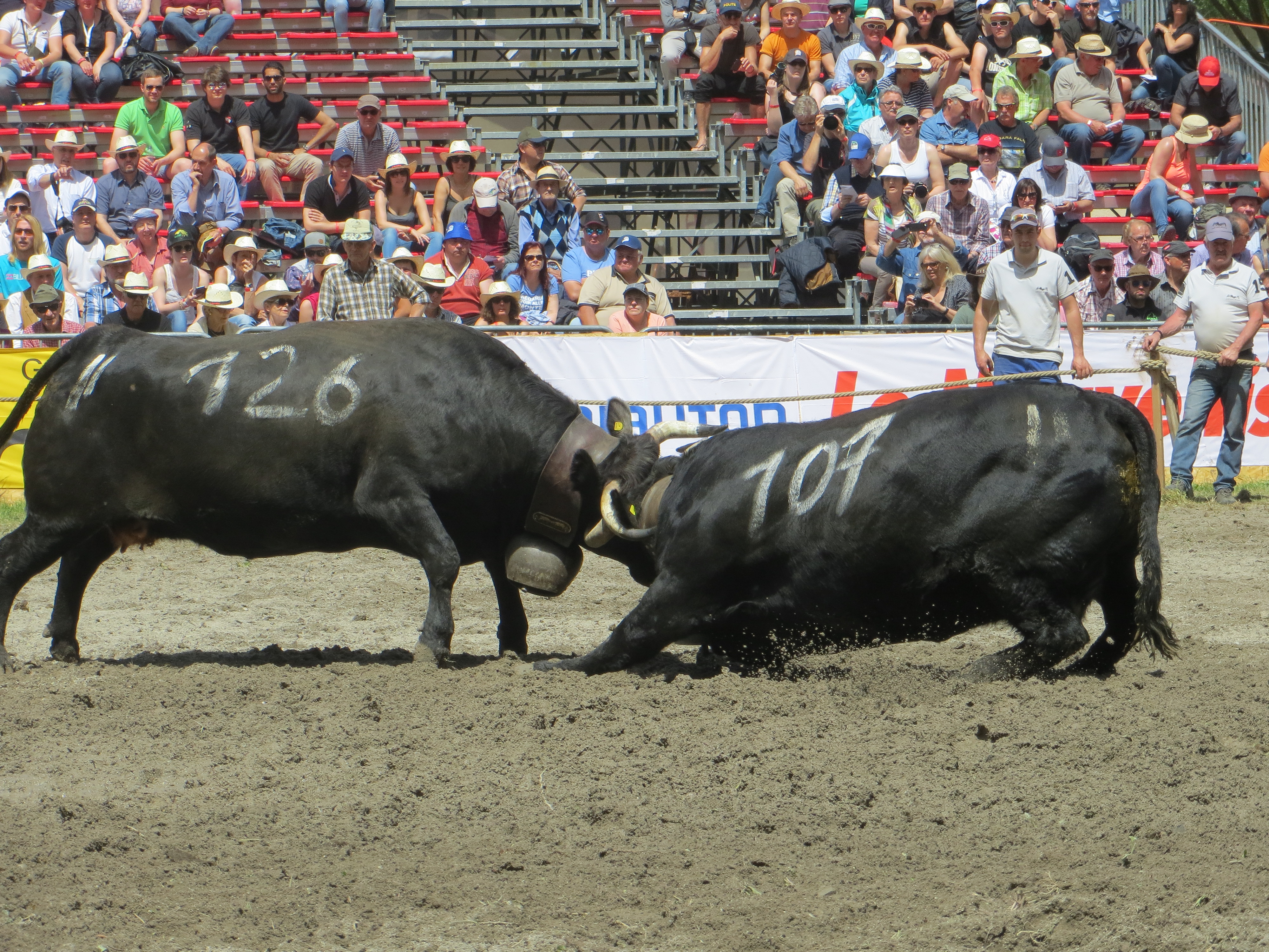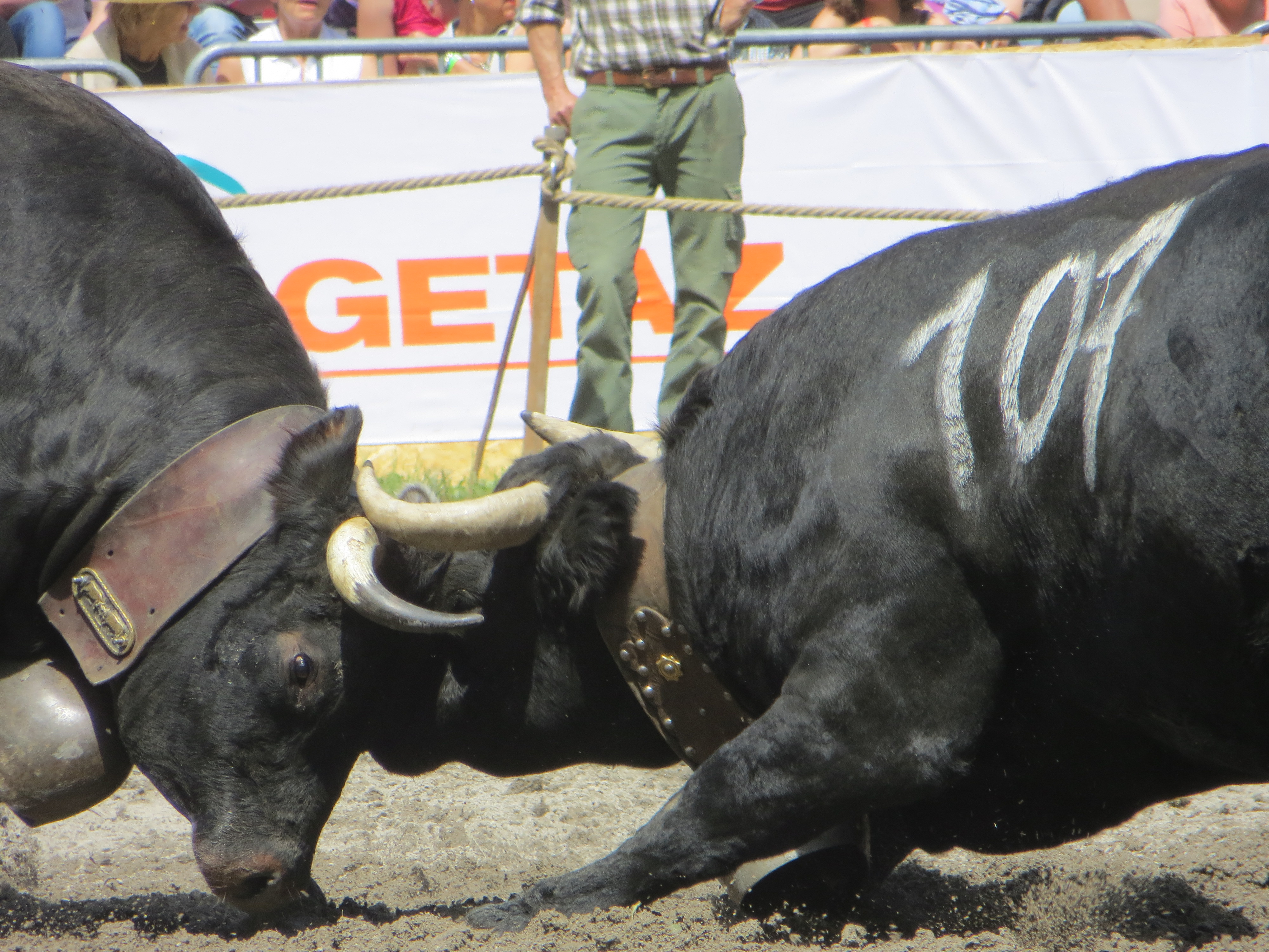 The cowboys prevent the cows from really hurting each other. (And if you think about traditional bullfighting where a bull is injured or killed, a Swiss rodeo is tame.) The day is really about making friends, trying local cuisine and showing off your livestock. Pure Bakersfield.