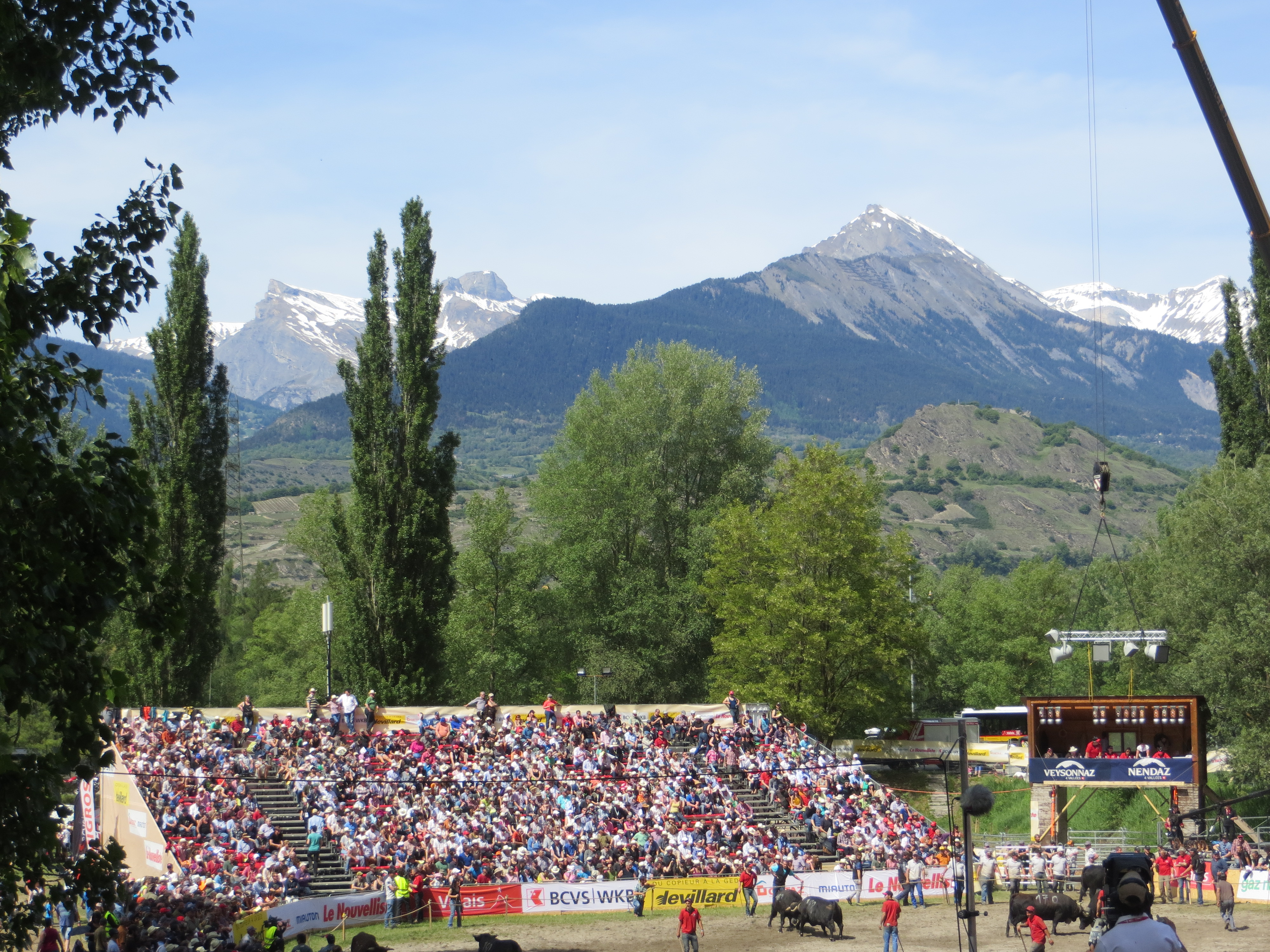 During the competition, les cow-boy parade their cows around a ring and encourage them to fight other cows. Sometimes eight or ten cows are in the ring at once–coupled off in fights. When the cows flare their nostrils and kick up dirt with their hooves, the crowd goes wild.