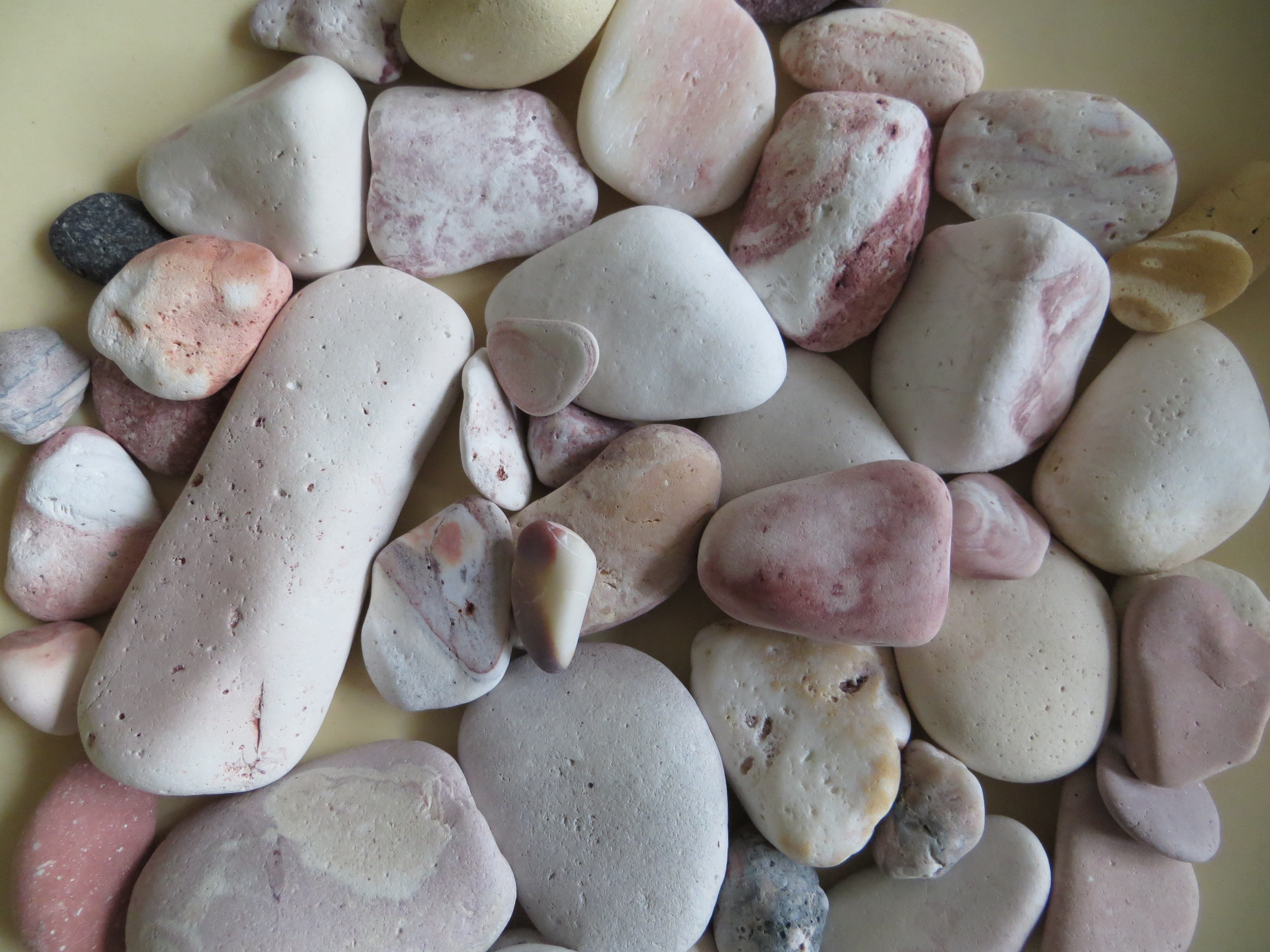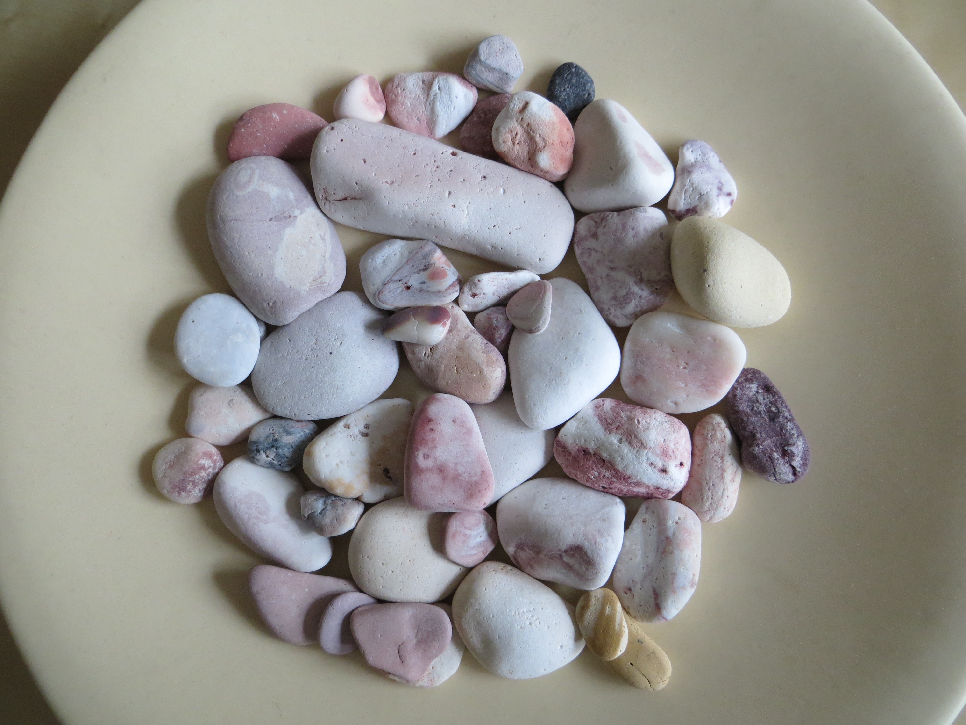 We spent the whole day there–sunning, swimming, reading and walking along the shore. Except I couldn’t walk more than four feet without bending over to pick a bright pink, yellow or purple pebble. The beach was positively candy-colored. With both hands full of pebbles and a pile growing on my towel, my husband asked me “Umm, what’s the plan here?”