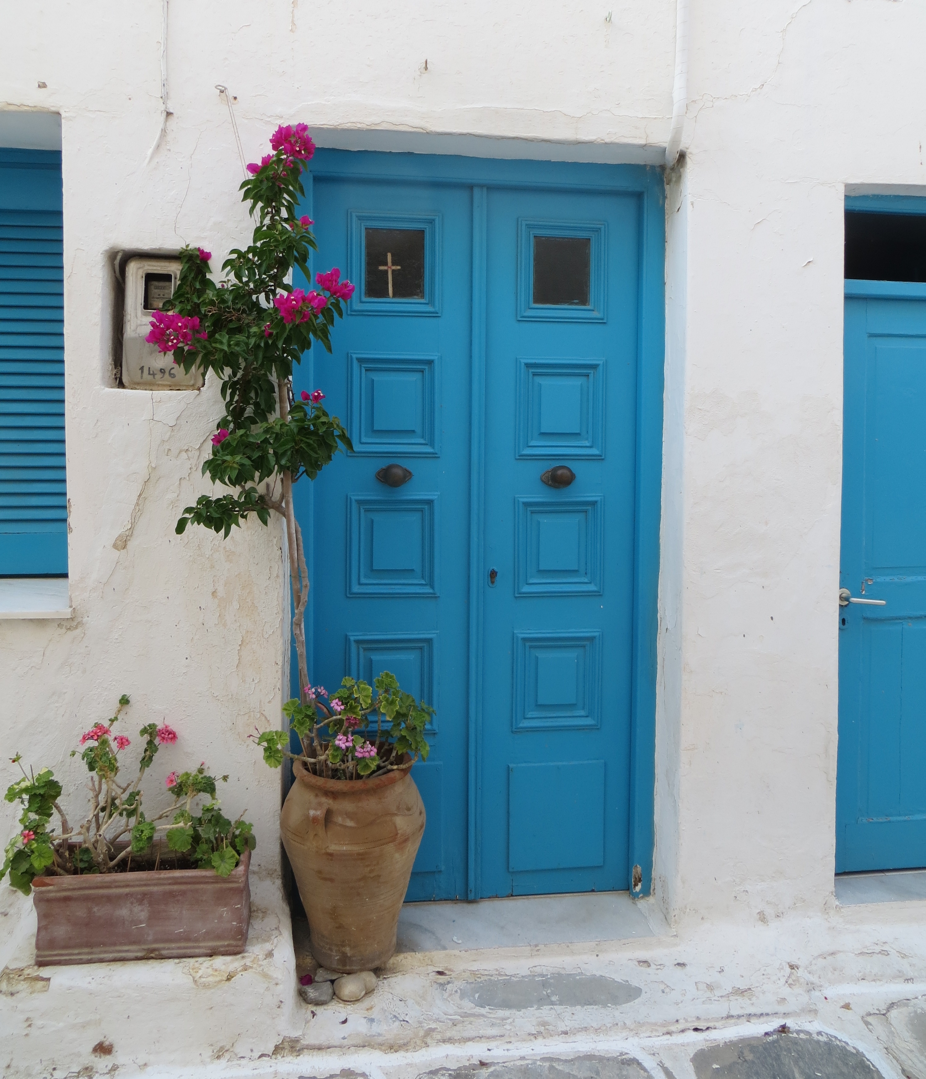 We spent three days on Paros–shopping through its maze of streets, sunning on Martselo Beach and eating at its fantastic restaurants. The B&B where we stayed was a favorite. The host met us at the harbor, led us to this quiet haven (pictured below) and fed us homemade treats.